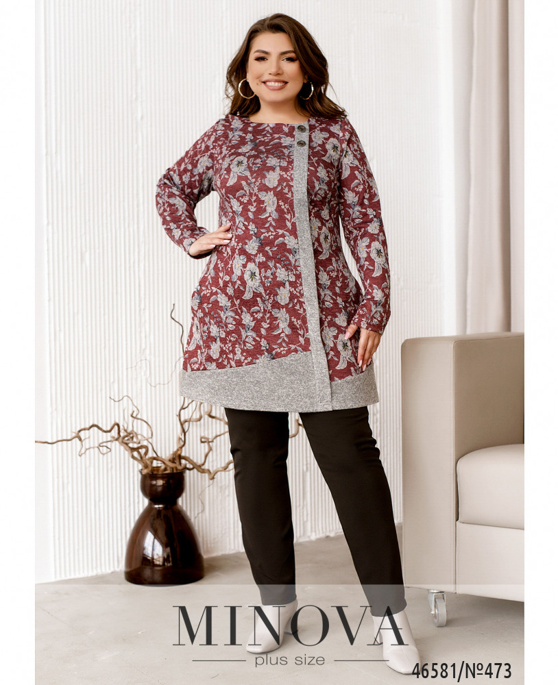 58-60 р-р: длина туники 83см, длина рукава от горловины 73см, длина рукава от плечевого шва 61см, обхват рукава 48,5см, ОГ - 124см, ОТ -118см, ОБ -138см.