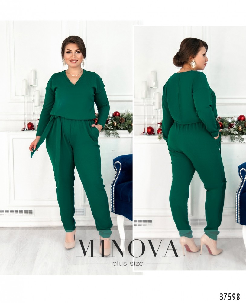 54 р-р: общая длина комбинезона 162см, длина рукава от горловины 71см, обхват рукава 46см, ОГ - 118см, длина брюк по внешнему шву с учетом пояса 78см, длина брюк комбинезона по внутреннему шву 105см, ОТ - 104см, ОБ - 124см.