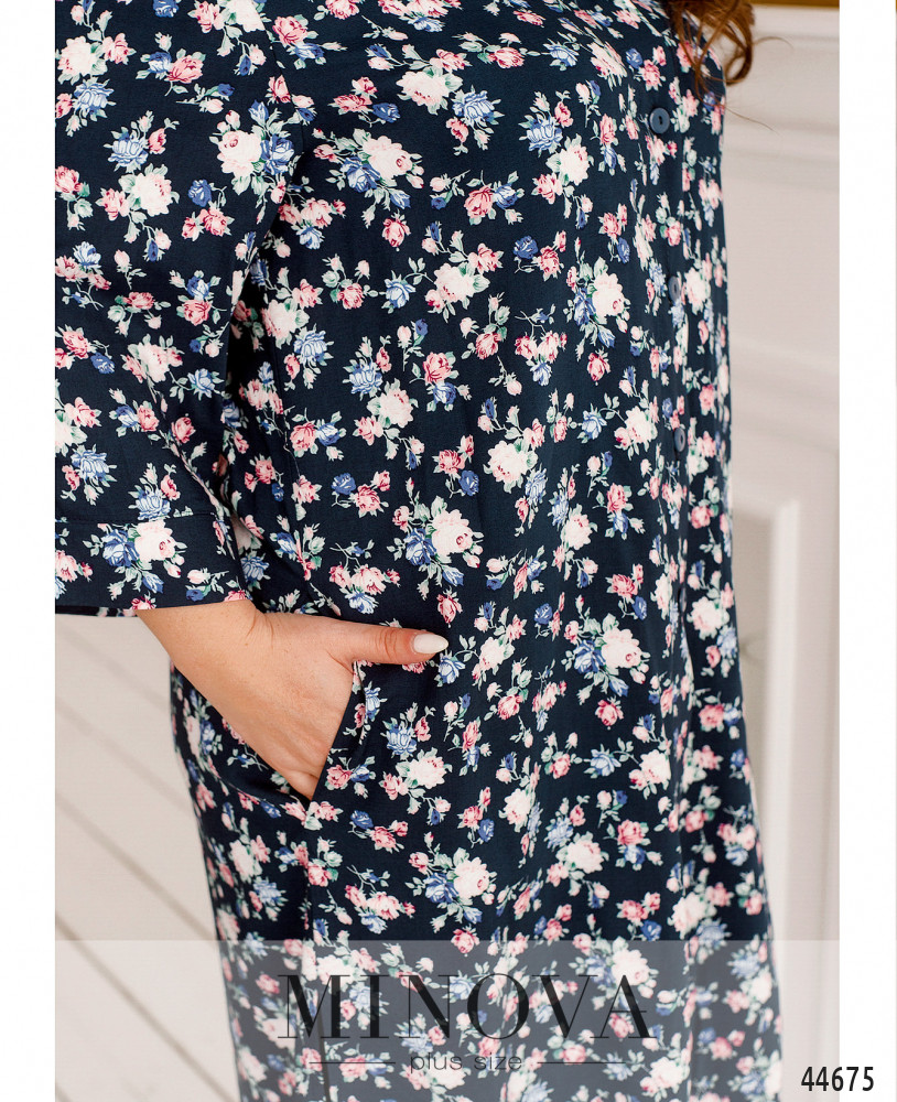 Элегантный костюм батал, рубашка длинная, рукава с мягкими манжетами, по бокам - карманы в шве, застёгивается на ряд пуговиц от отложного воротничка до низу. Брюки без застёжек, по бокам карманы в шве, посадка высокая, в пояс вшита резинка. Пояс/аксессуар входит в комплект.