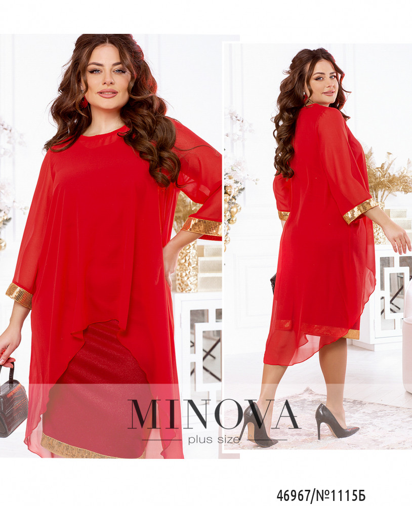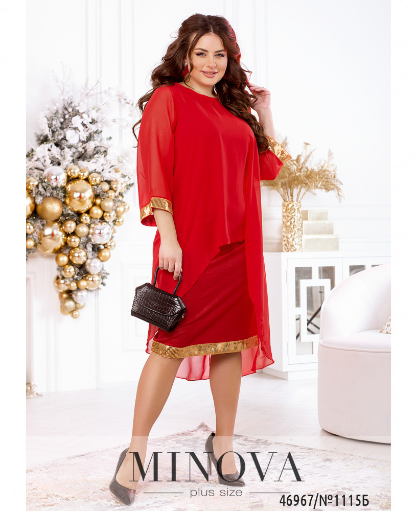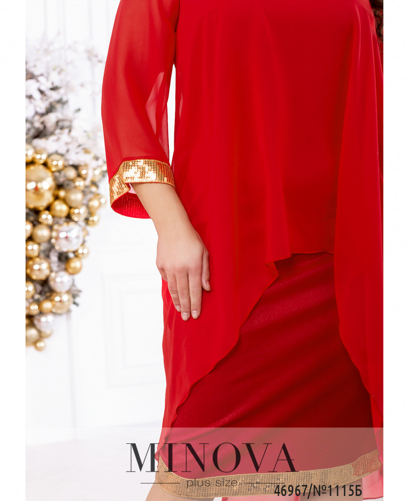 Яркий нарядный комплект, украшенный пайетками, можно носить вместе или разделить, создавая вечерние образы с другими вещами. Изящное однотонное платье-футляр без рукавов идеально дополнено воздушное шифоновой накидкой с длинными рукавами и ассиметричным подолом, удлиненным по спинке.