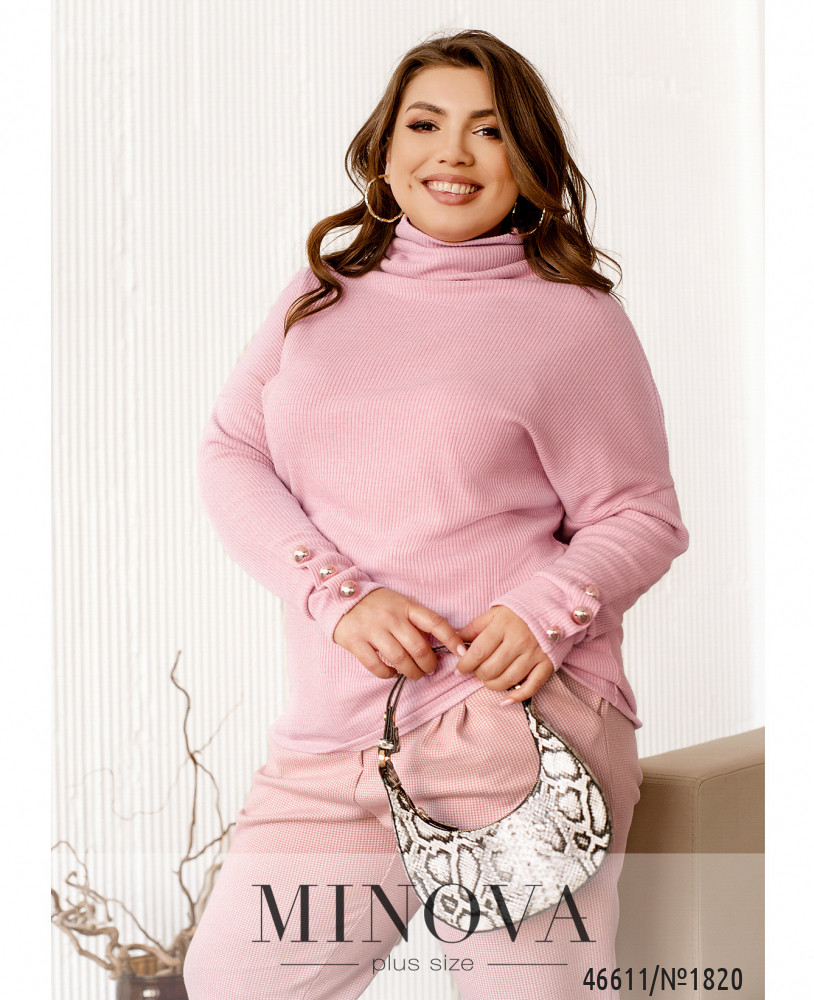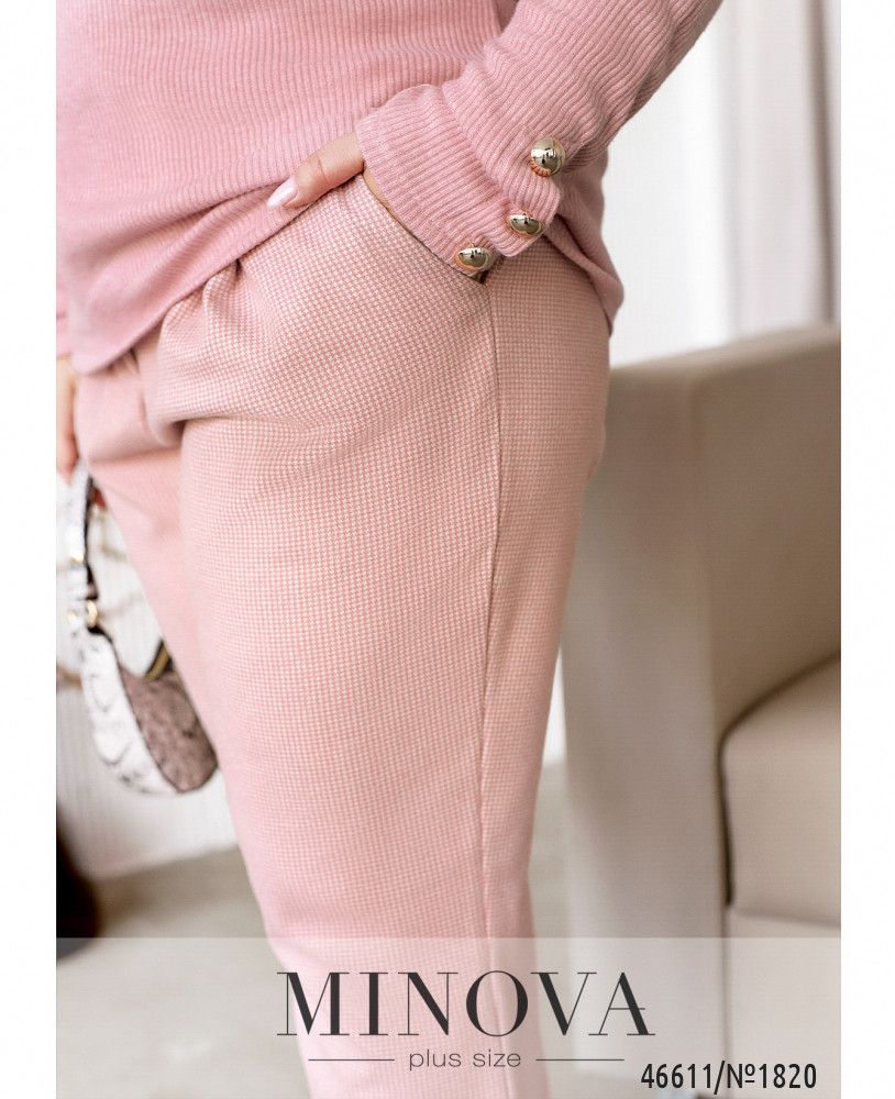 Стильный костюм, выполненный из мягких тканей, позволит вам в любую погоду и время года выглядеть женственно и привлекательно. Изюминкой данного комплекта являются выразительные брюки, застёгивающиеся на змейку и пуговицу, с декоративным хлястиком, стягивающим низ штанины спереди. Костюм идеально дополняет лаконичный однотонный гольф с пуговицами на рукавах.
