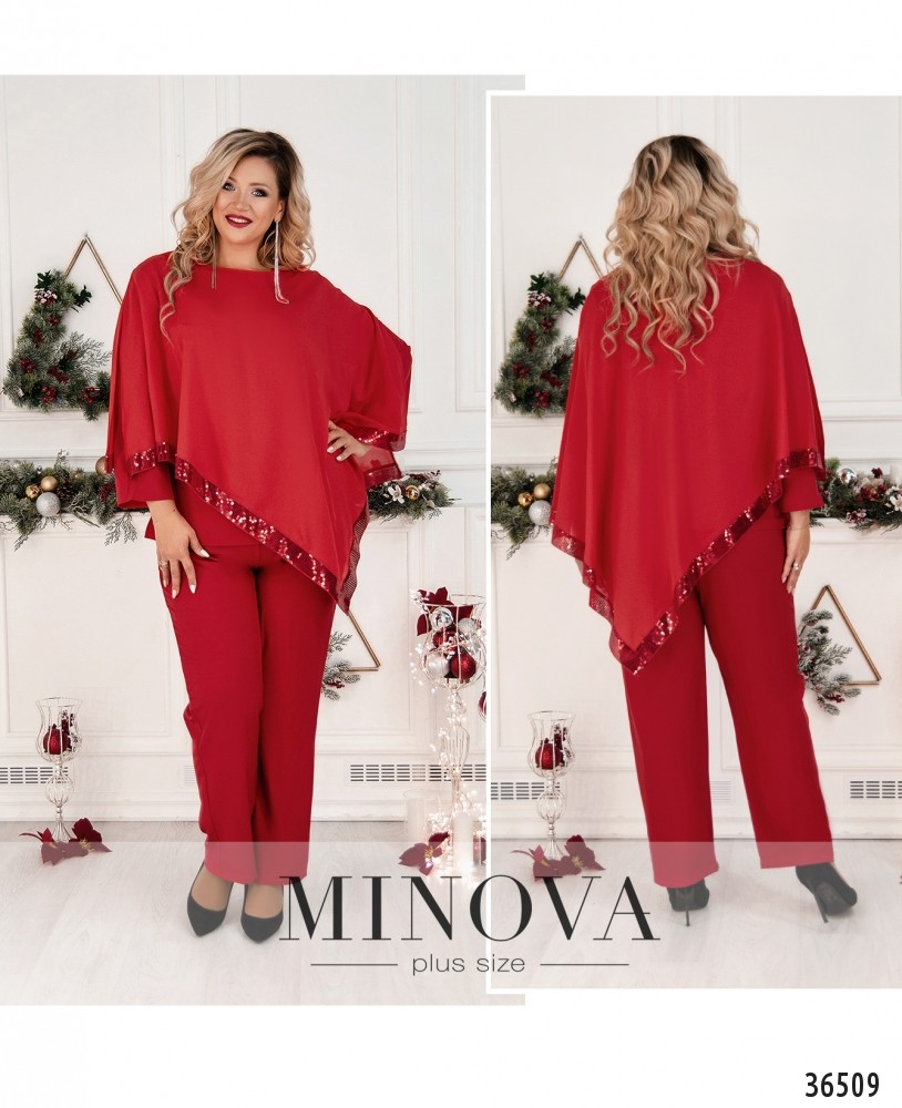 Очень нарядный, оригинальный и праздничный костюм-тройка из свежей коллекции женской одежды от Minova идеально подходит для девушек с «грушевой» фигурой или мелкими несовершенствами. Всё благодаря накидке-пончо из очень лёгкой ткани, накидка с широким полукруглым вырезом горловины, по подолу оторочена рядом блестящих пайеток, карманов и застёжек нет, по бокам – небольшие разрезы. Топ без застёжек и карманов, с вытачками на груди, рукавами длиной ¾, из мягкой лёгкой ткани. Брюки со вшитой в пояс резинкой и врезными карманами по бокам, посадка высокая, крой прямой. Сделайте свой образ по-настоящему незабываемым, дополнив его подходящими украшениями и обувью!