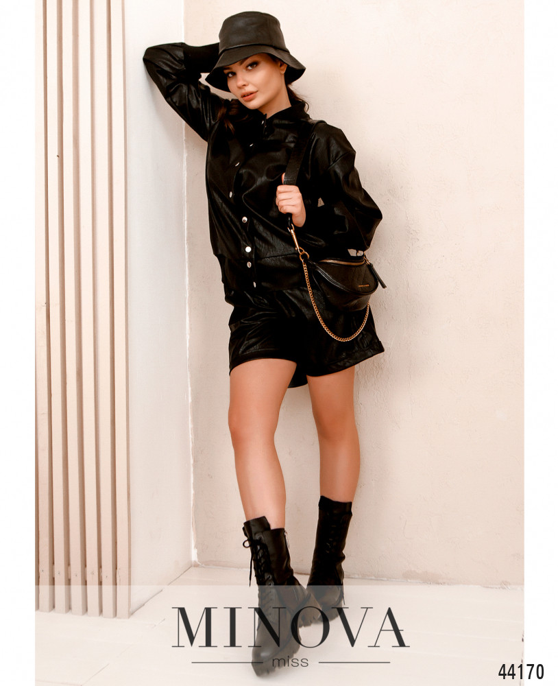 Стильный костюм с курточкой и шортами. Куртка без подкладки, мягкая изнутри. Застёгивается на ряд кнопок спереди по центру. Снизу манжет со вставками мягкой ткани. Манжеты на рукавах мягкие, без застёжек, горловина также с мягкой оторочкой. По бокам - карманы в шве. Шорты со вшитой в пояс резинкой, свободные, с высокой посадкой, по бокам - карманы в шве, снизу небольшие подвороты.