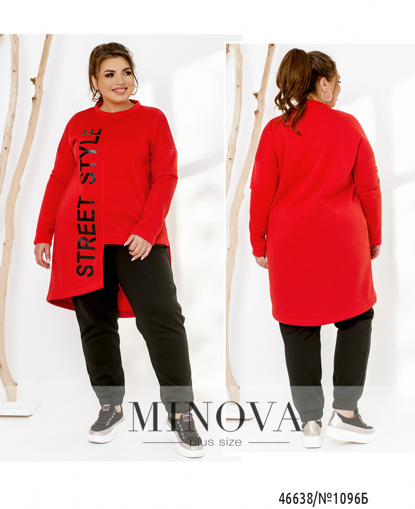 Контрастный спортивный костюм, дополненный принтами, отлично сочетается с кроссовками и объемными джинсовыми куртками. В комплект входят лаконичные брюки-джоггеры с карманами в боковых швах и резинками, вшитыми по линии талии и по низу штанин, а также удлиненная туника-свитшот с ассиметричным низом, дополненная длинными рукавами с приспущенной линией плеч. Пояс НЕ входит в комплект.