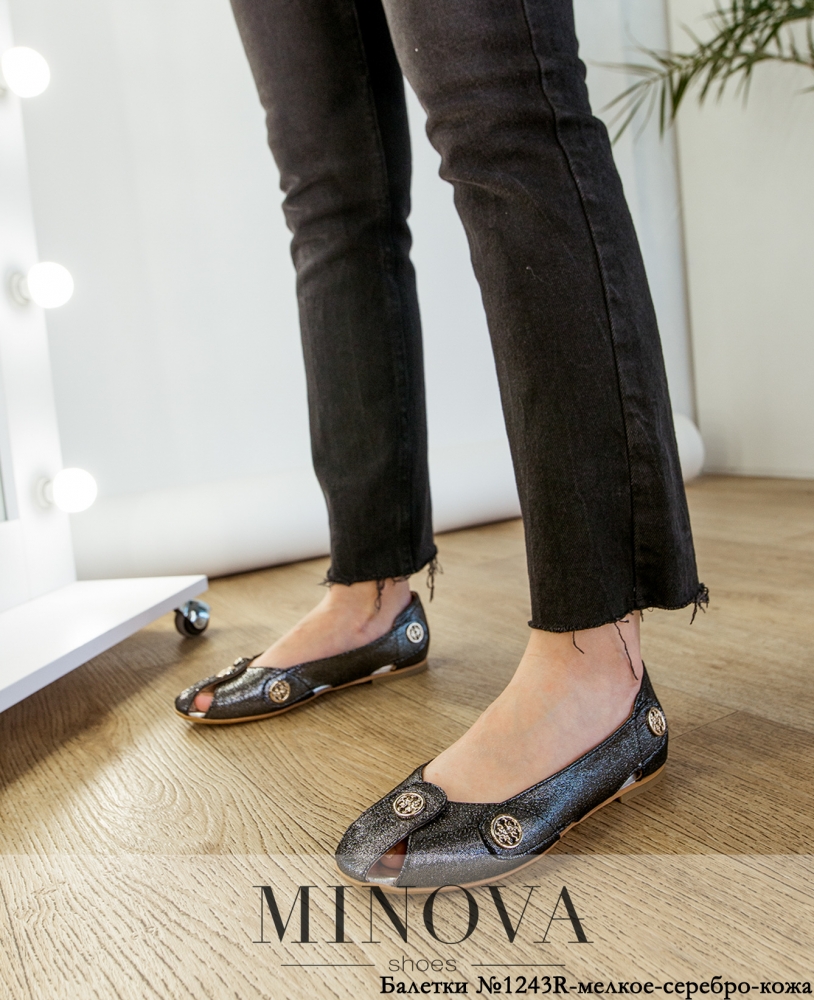 Балетки №1243R-дрібне-срібло-шкіра