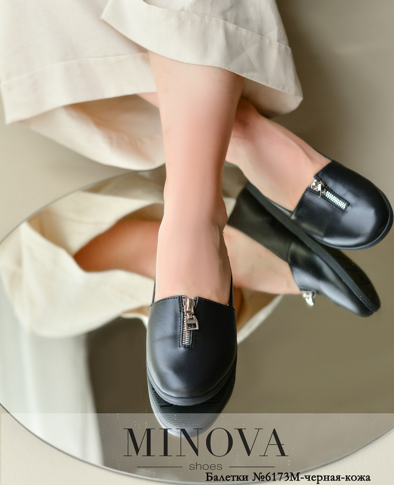 Стильные балетки из натуральной кожи с декоративной крупной молнией на подъёме. Без застёжек, подошва невысокая, с фигурным рифлением протектора. Носок отрезной.