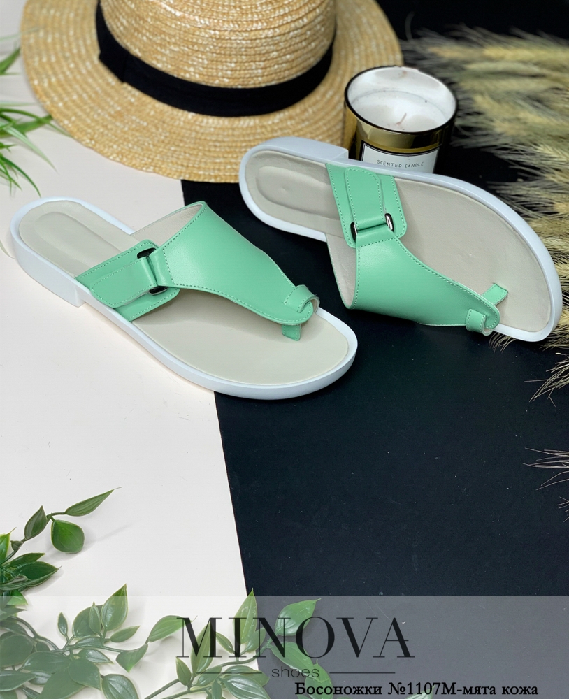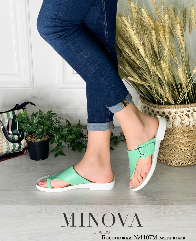 Кожаные мюли через пальчик на плоской подошве с уплотненной пяточкой. Мюли фиксируются застежкой-липучкой. Внутри кожаная стелька.