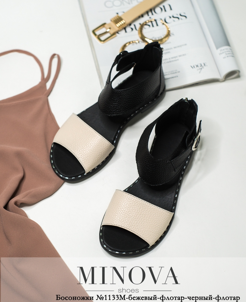 Босоніжки №1133М-бежевий-флотар-чорний-флотар