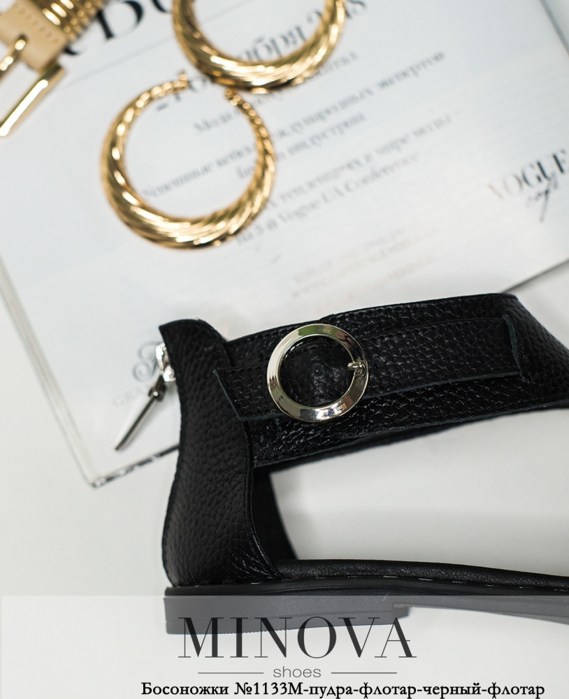 Босоніжки №1133М-пудра-флотар-чорний-флотар