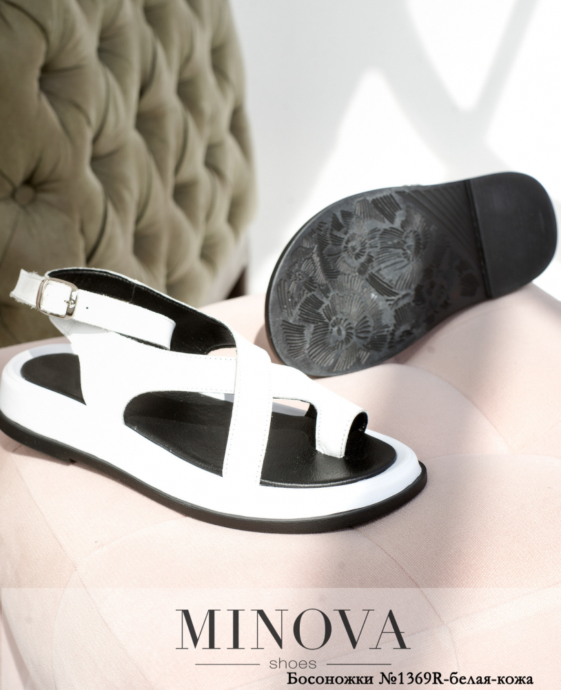 Стильные кожаные босоножки неординарного фасона, с широкими ремешками, изящно опоясывающими большой палец и плавно поднимающимися к щиколотке, где находится застежка. Дополнительный комфорт создает объемная подошва.