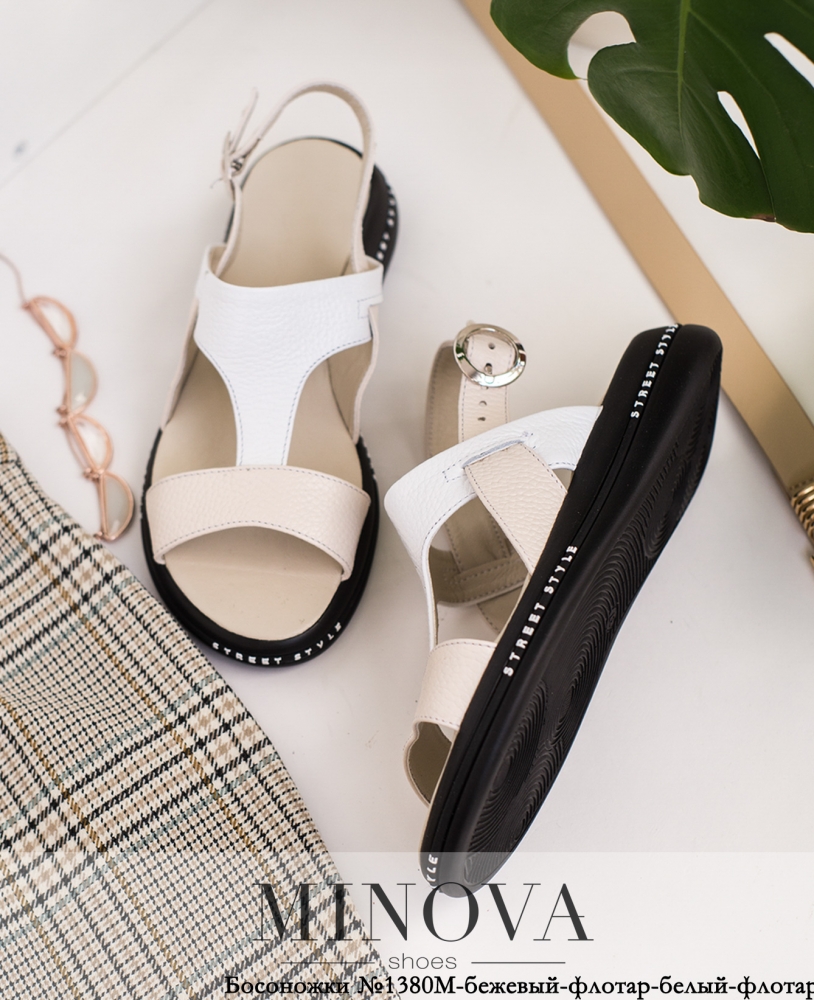 Босоножки №1380М-бежевый-флотар-белый-флотар