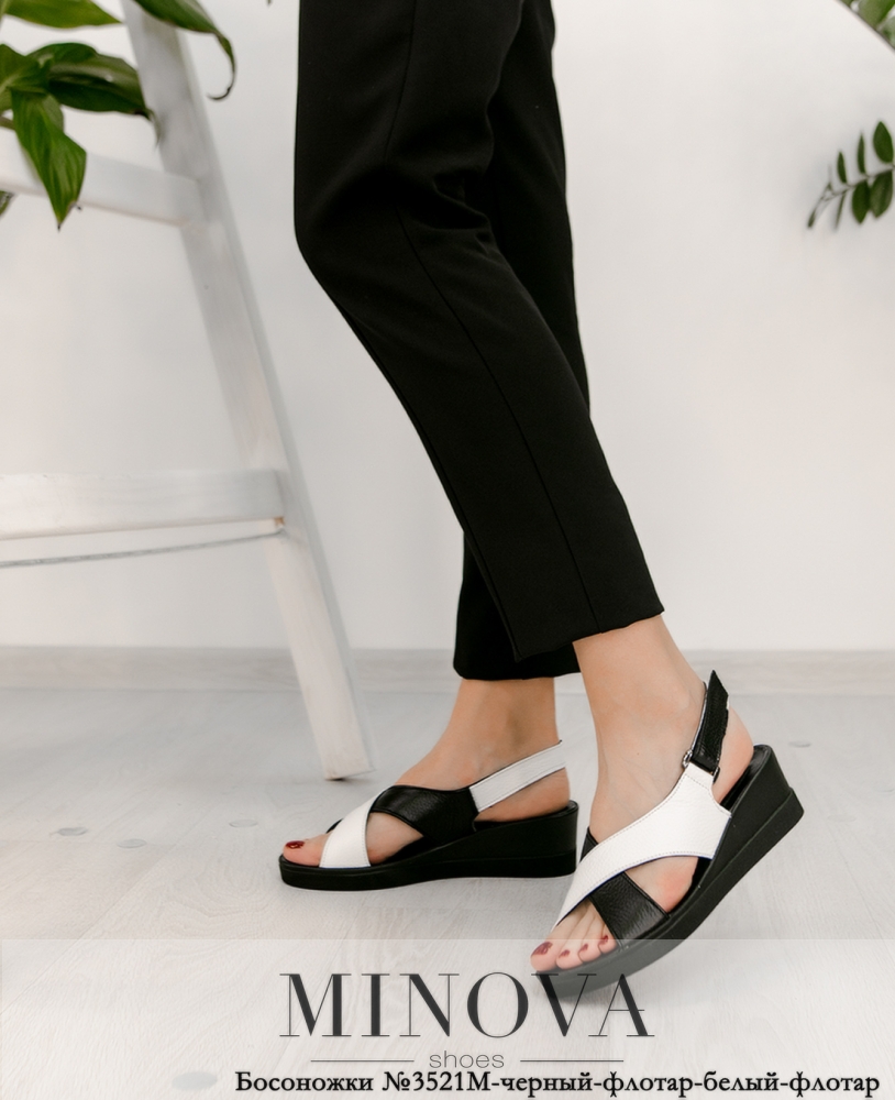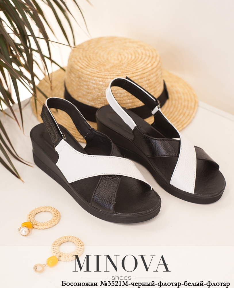 Элегантные кожаные босоножки с застёжкой-липучкой на щиколотке, изготовлены из мягкой натуральной кожи, представлены на невысокой удобной танкетке. Носок и задник открытые.