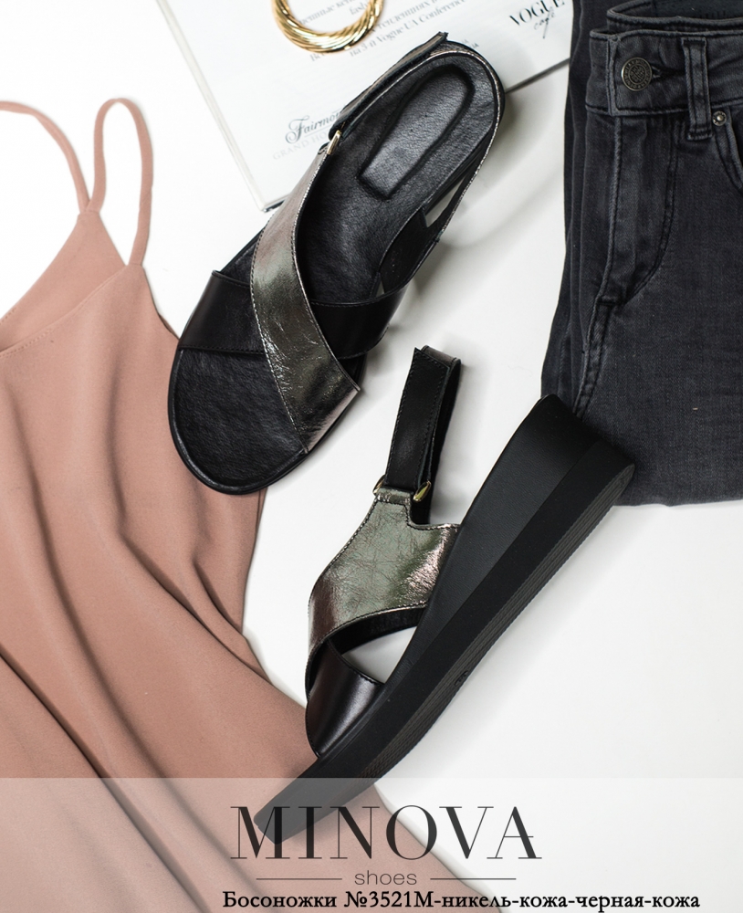 Удобные и нарядные босоножки из натуральной кожи, с застёжками-липучками на щиколотке. Носок и пятка открытые. Танкетка невысокая, устойчивая.
