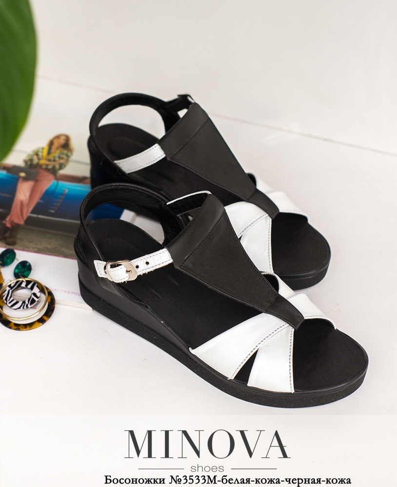 Босоножки №3533М-белая-кожа-черная-кожа
