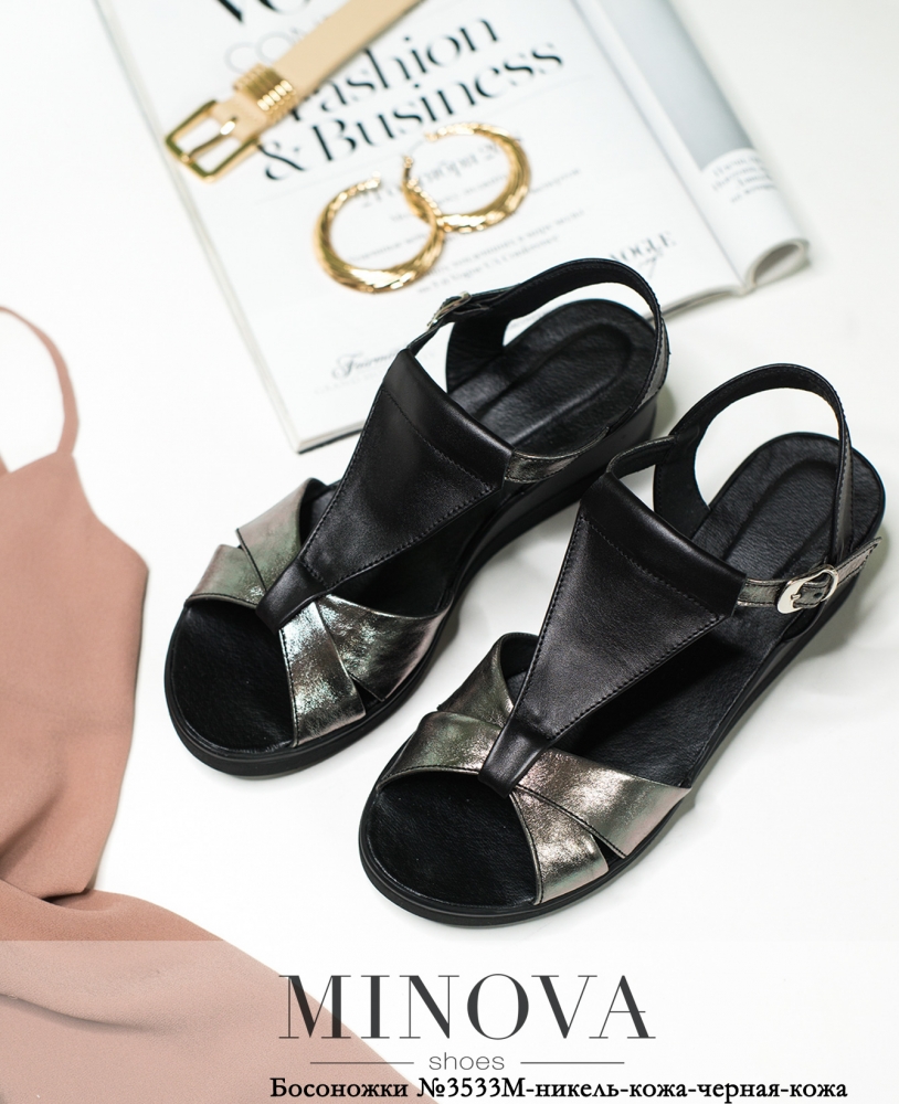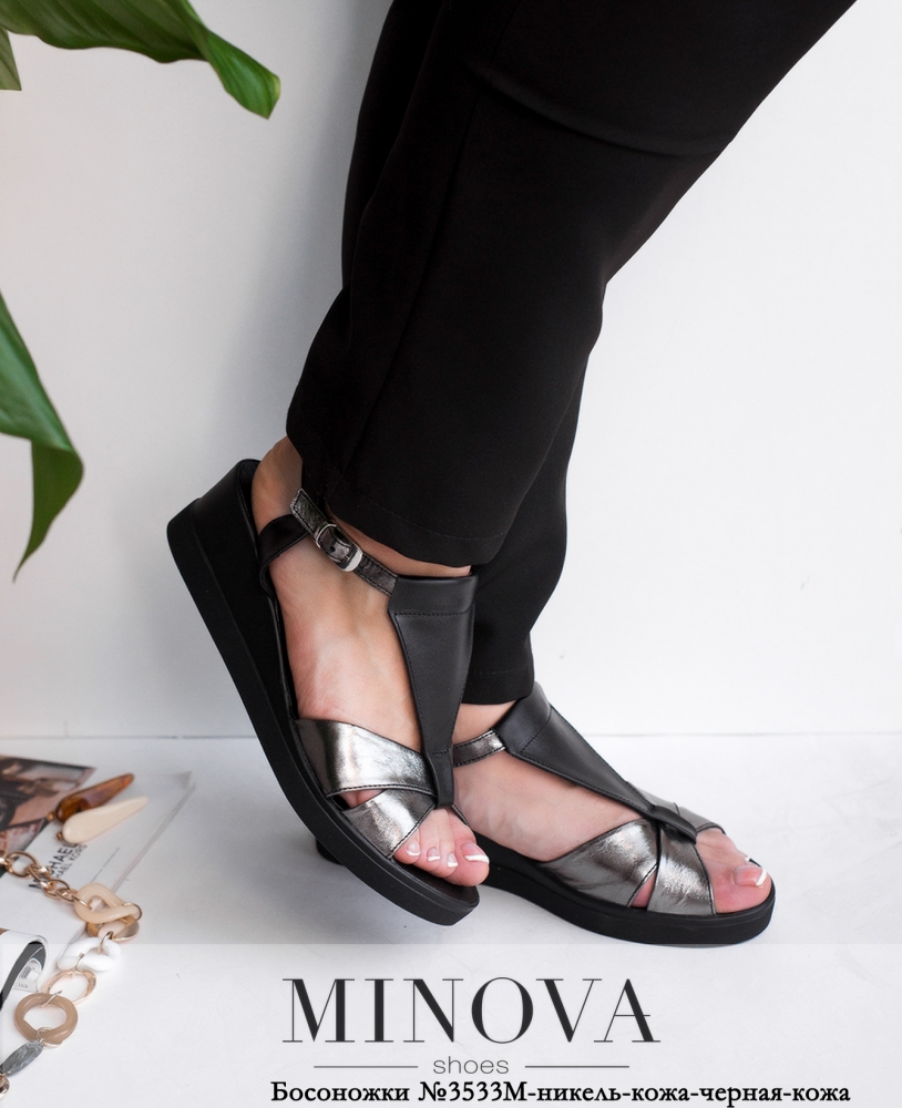 Босоножки №3533М-никель-кожа-черная-кожа