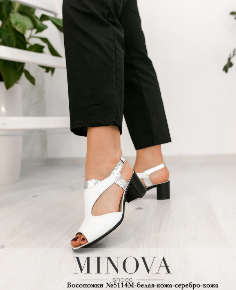 Оригинальные и нарядные босоножки на устойчивом каблуке средней высоты, выполнены из натуральной кожи, без задника и носка, застёжка - на ремешке на щиколотке.