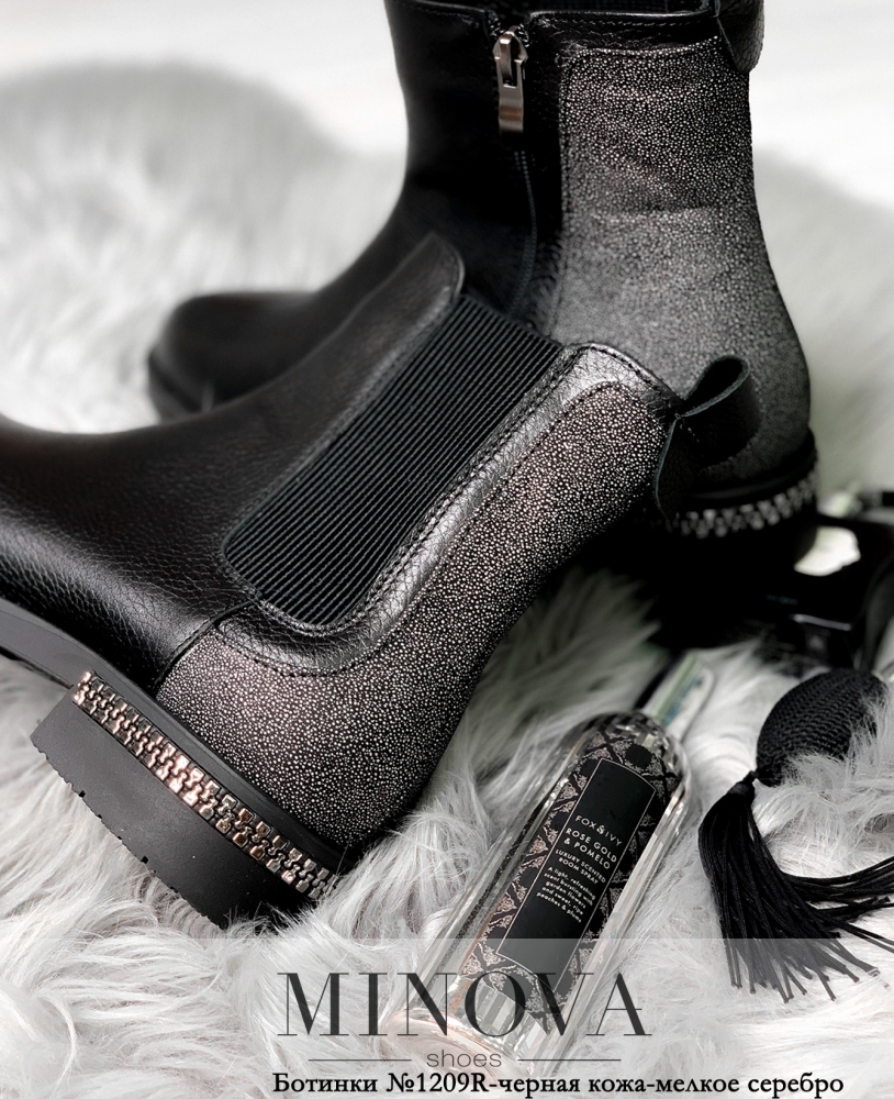Ботинки №1209R-черная кожа-мелкое серебро