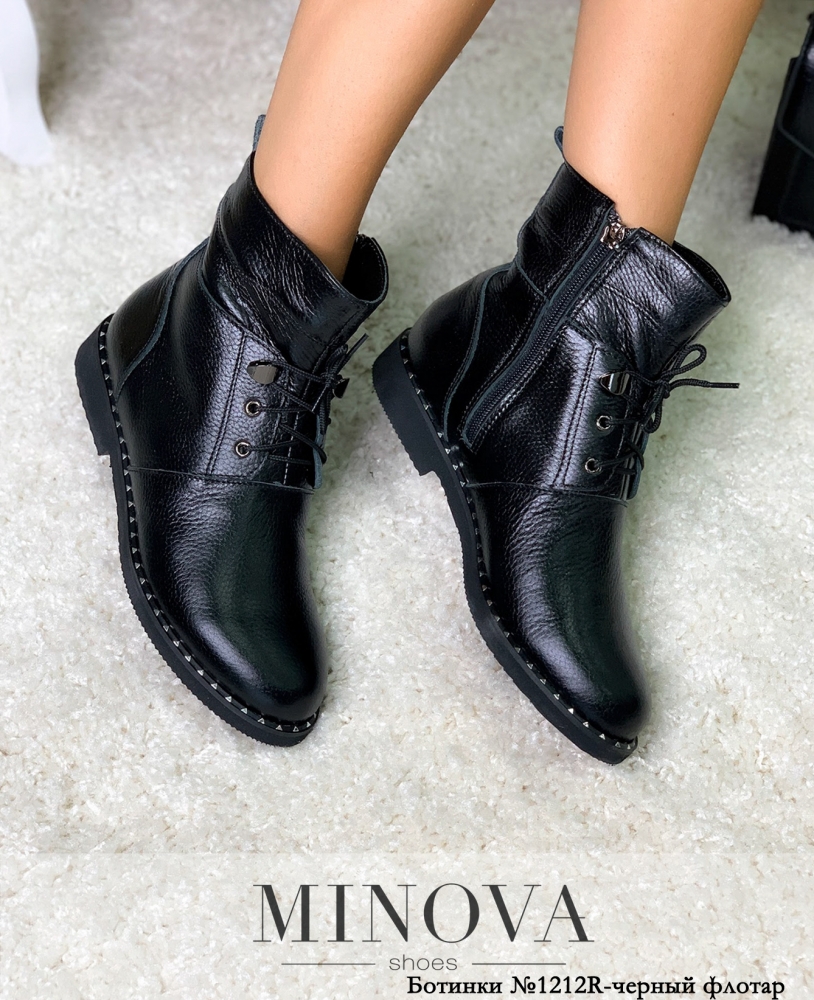 Минималистичные ботинки в мужском стиле ещё больше подчеркнут вашу женственность и изящество ножек. Minova предлагает демисезонные ботинки с мягким плотным утеплением, на подъёме – декоративная шнуровка, отверстия укреплены люверсами, а верхний ряд – с металлическими петельками. Сзади сверху расположена петелька. Рабочая змейка – по внутренней стороне, от верха до подошвы. Подошва со слабо выраженным каблуком и мелкой ребристостью протектора, по ранту украшена металлическими блестящими заклёпками. Вы можете выбрать модель из кожи флотар для дождливых дней или замшевую, для сухой погоды. Хорошо будут сочетаться с джинсами или брюками.