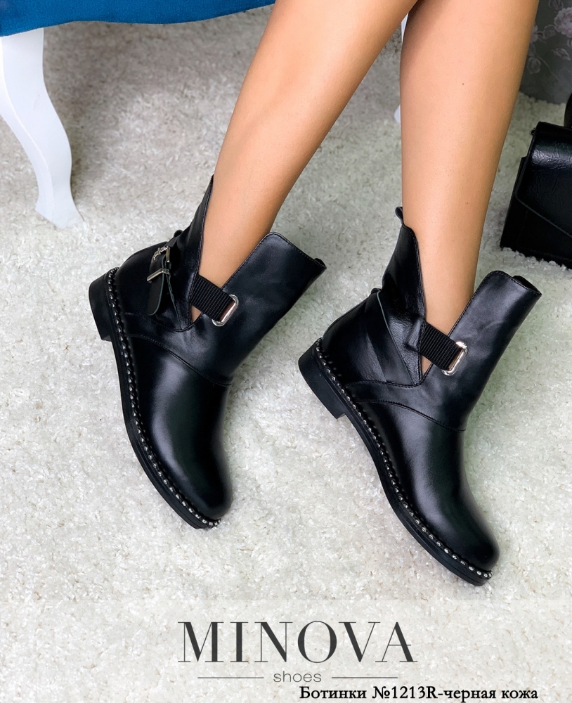 Свободный подъём представленной модели демисезонных ботинок от Minova понравится девушкам, которые любят заправлять джинсы в ботинки и носить тёплые носочки. Модель «мужского» фасона, очень стильная, без застёжек, но легко надеваются за счёт особенностей кроя. Передняя часть в виде широкого язычка свободно регулируется с помощью подшитых по бокам ремешков. Ремешок пропущен через укреплённое металлическим люверсом отверстие. Сбоку по внешней стороне – декоративный ремешок с пряжкой, но при желании его тоже можно регулировать. Рант подошвы декорирован блестящими металлическими заклёпками. Каблук совсем не высокий, подошва гибкая. Ботинки утеплены байкой и будут удачно сочетаться с вашим повседневным гардеробом.