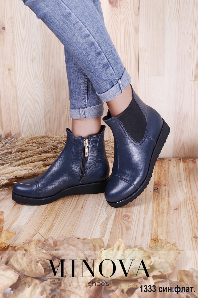 Кожаные ботинки «челси» на плоской утолщенной подошве. Голенище оснащено прорезиненной вставкой. Ботинки застегиваются на молнию с внутренней стороны.