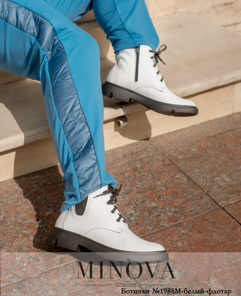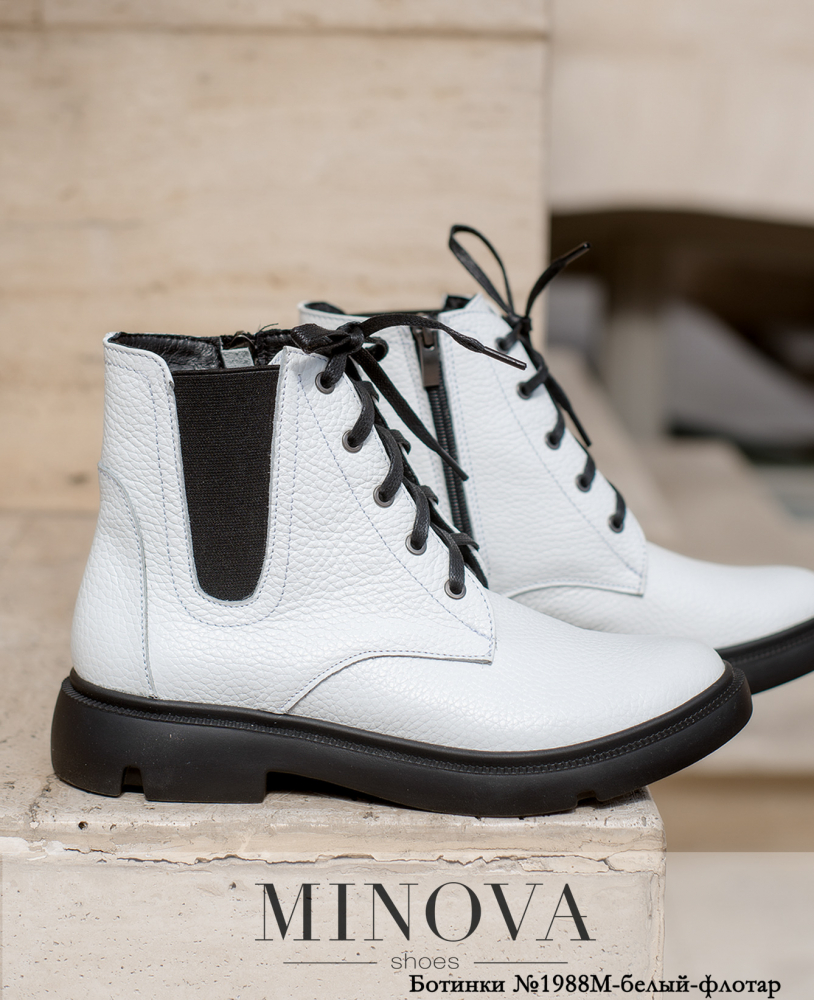 Удобные высокие ботинки выполнены из мягкой натуральной кожи. Застёжки - молния на внутренней стороне голенища и шнуровка на подъёме, отверстия укреплены люверсами. Под шнуровкой язычок. Подошва рифлёная.