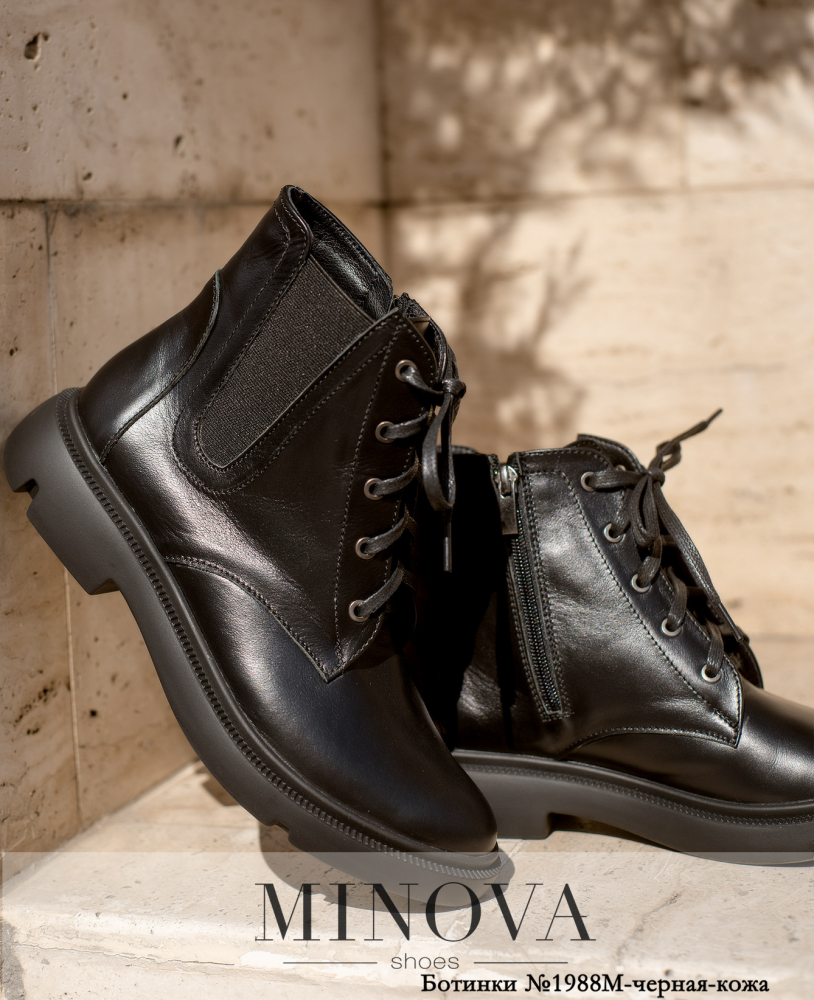 Ботинки №1988М-черная-кожа