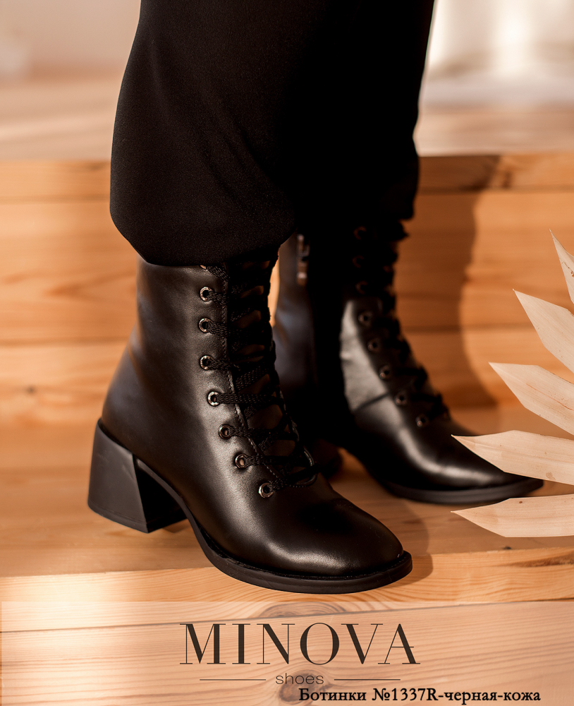 Стильные ботинки из натуральной кожи, каблук расширяется к низу. Застёжка - рабочая молния по внутренней стороне и шнуровка спереди по центру, под шнуровкой - язычок, отверстия укреплены люверсами. Ботинки с утеплением. Подошва с поперечным рифлением.