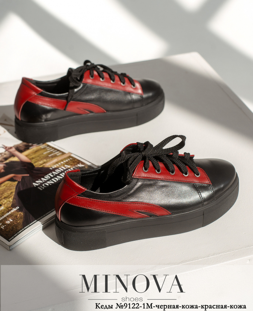 Кеди №9122-1М-чорна-шкіра-червона-шкіра