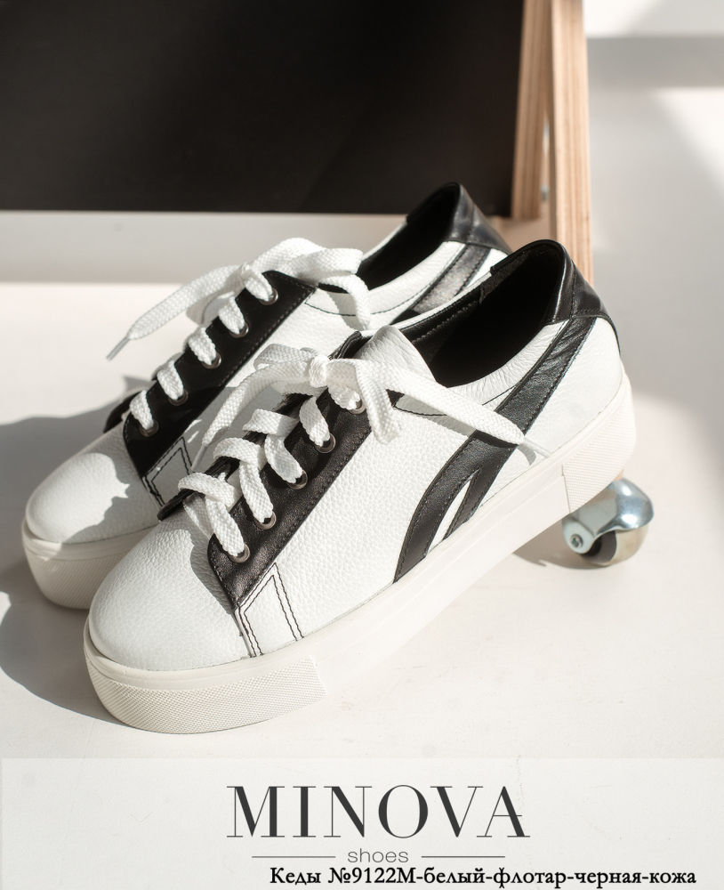 Яркие и стильные кеды из натуральной кожи с плоской массивной подошвой декорированы контрастными вставками. Шнуровка с отверстиями, укреплёнными люверсами, под ней - язычок.