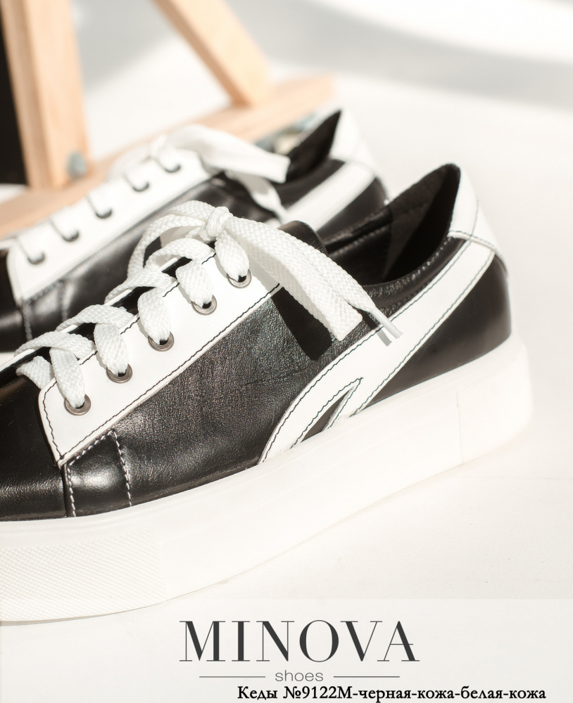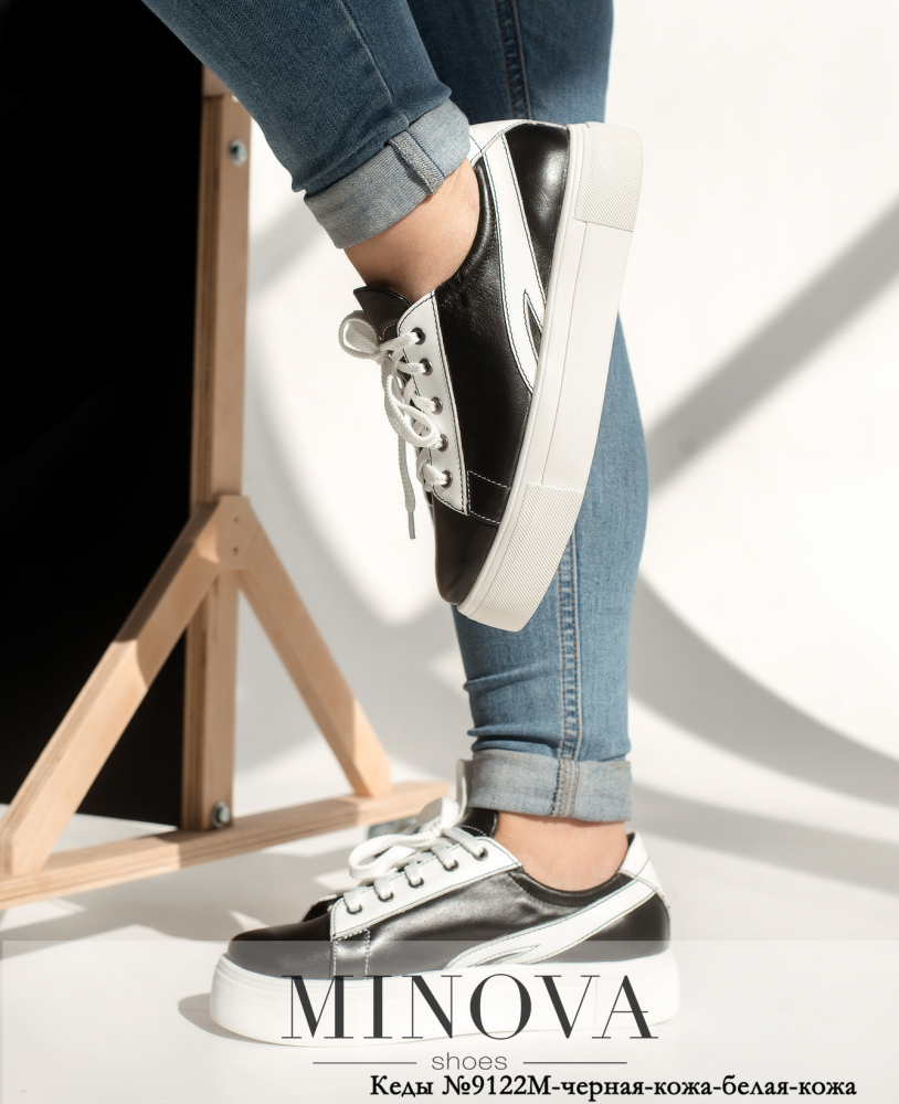 Кеди №9122М-чорна-шкіра-біла-шкіра