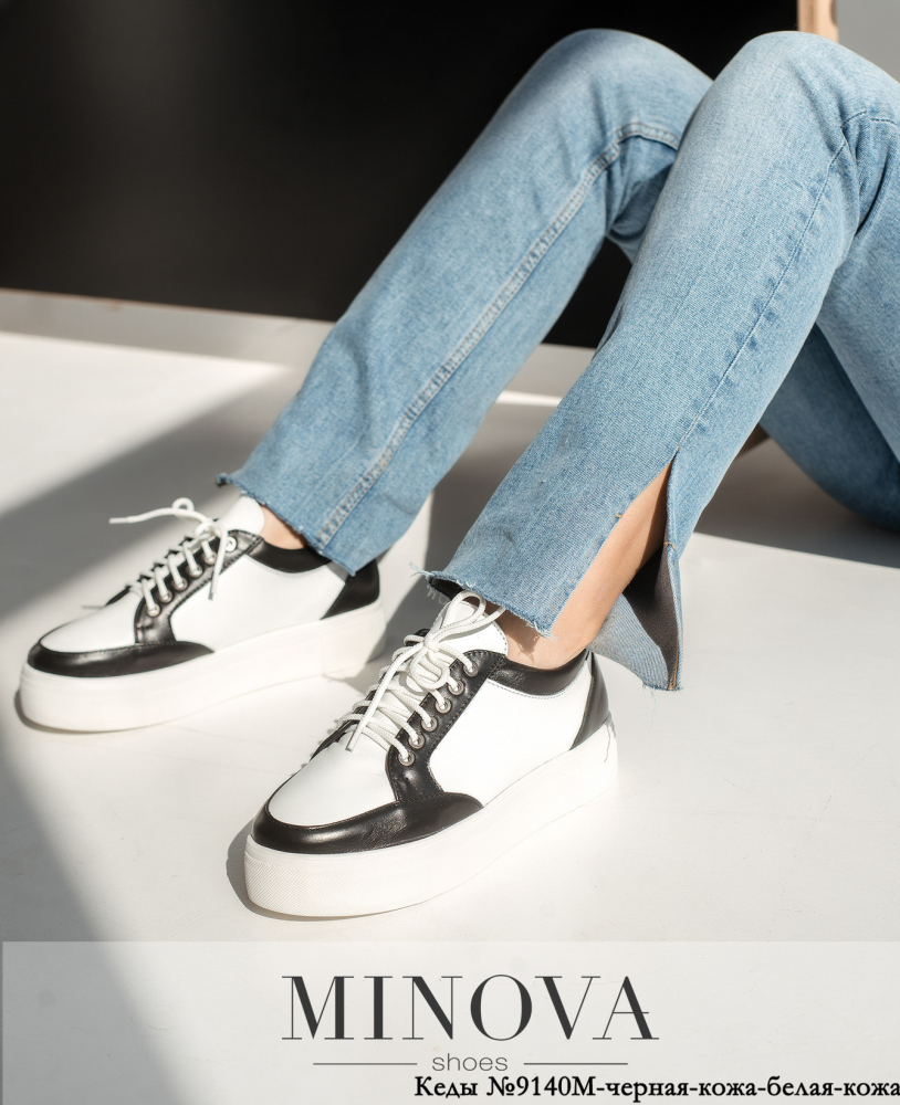 Кеды №9140М-черная-кожа-белая-кожа