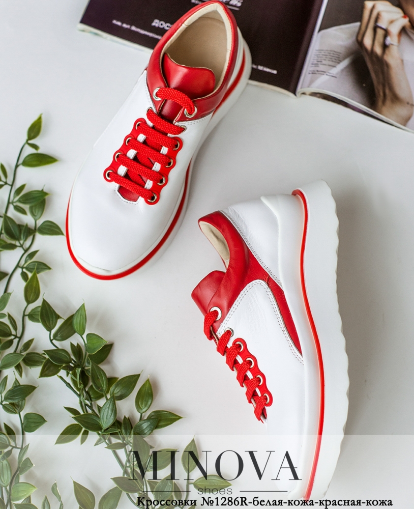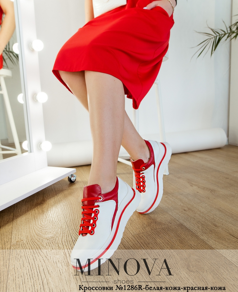 Кроcсовки №1286R-белая-кожа-красная-кожа