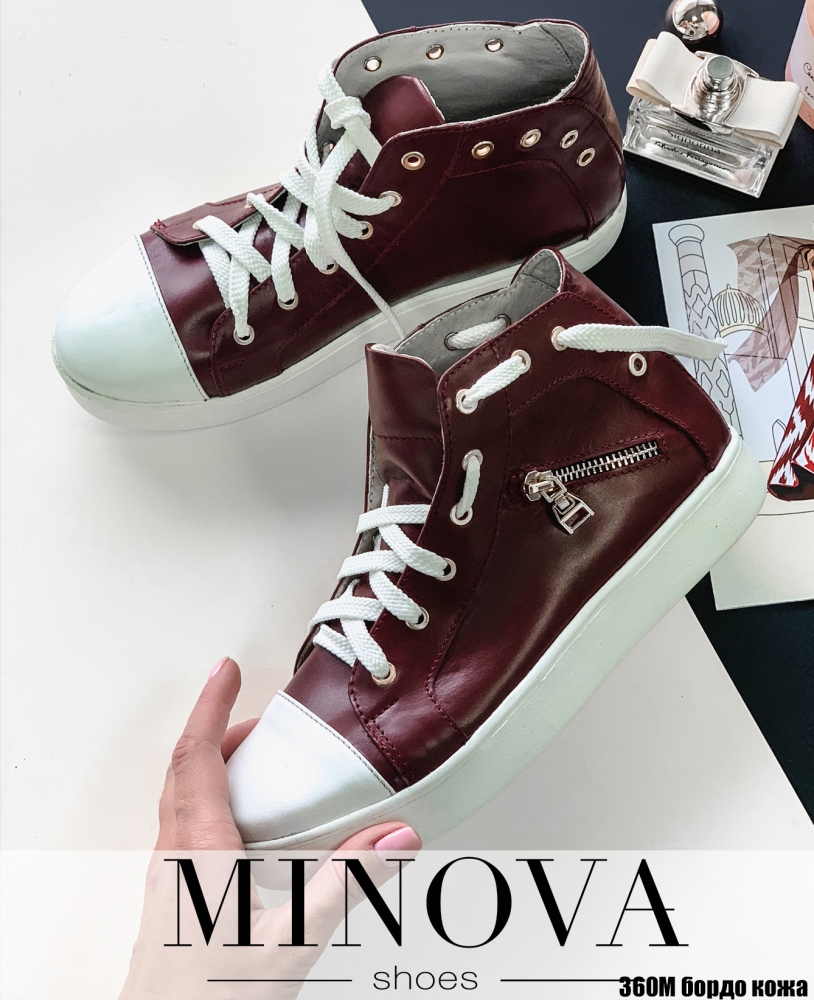 Элегантные и минималистичные кеды из натуральной кожи, на высокой подошве, протектор с разнонаправленными углублениями. На подъёме шнуровка с плоскими шнурками и с люверсами, под ней - язычок.