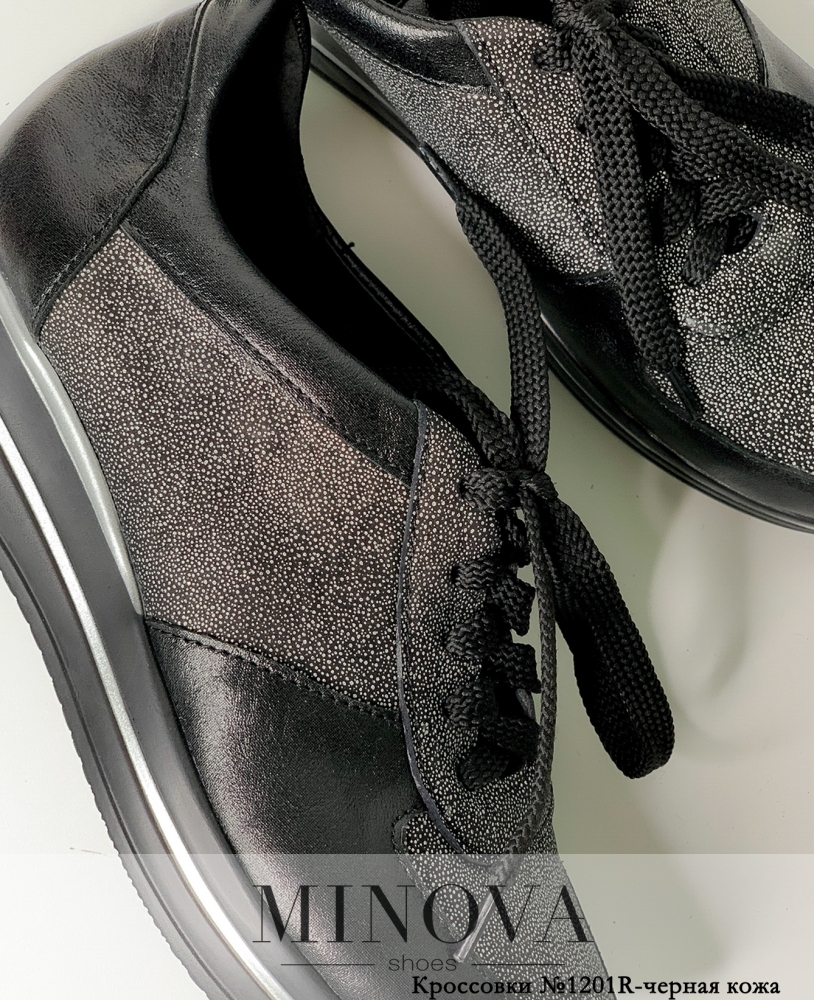 Кроссовки №1201R-черная кожа блеск-мелкое серебро кожа
