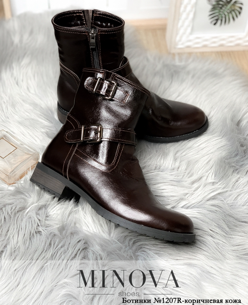 Практичные и удобные высокие ботинки из нового каталога Minova выдержаны в духе Дикого запада: они декорированы двумя декоративными ремешками на подъёме и на манжете, носок и задник отрезные, по внутренней стороне расположена рабочая змейка от верха до подошвы. Подошва гибкая, с небольшим каблуком, который на тон светлее основной части. Рисунок протектора с мелкой ребристостью по краям и небольшими ромбиками в центре. Удачно будет сочетаться с джинсами и создаст контрастный образ с платьем.