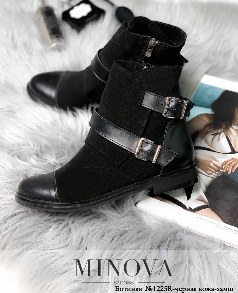 Черевики ЦГ№1225R-чорна шкіра -замш