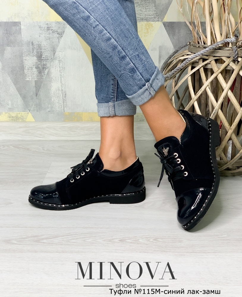 Туфлі №115М-синій лак-замш