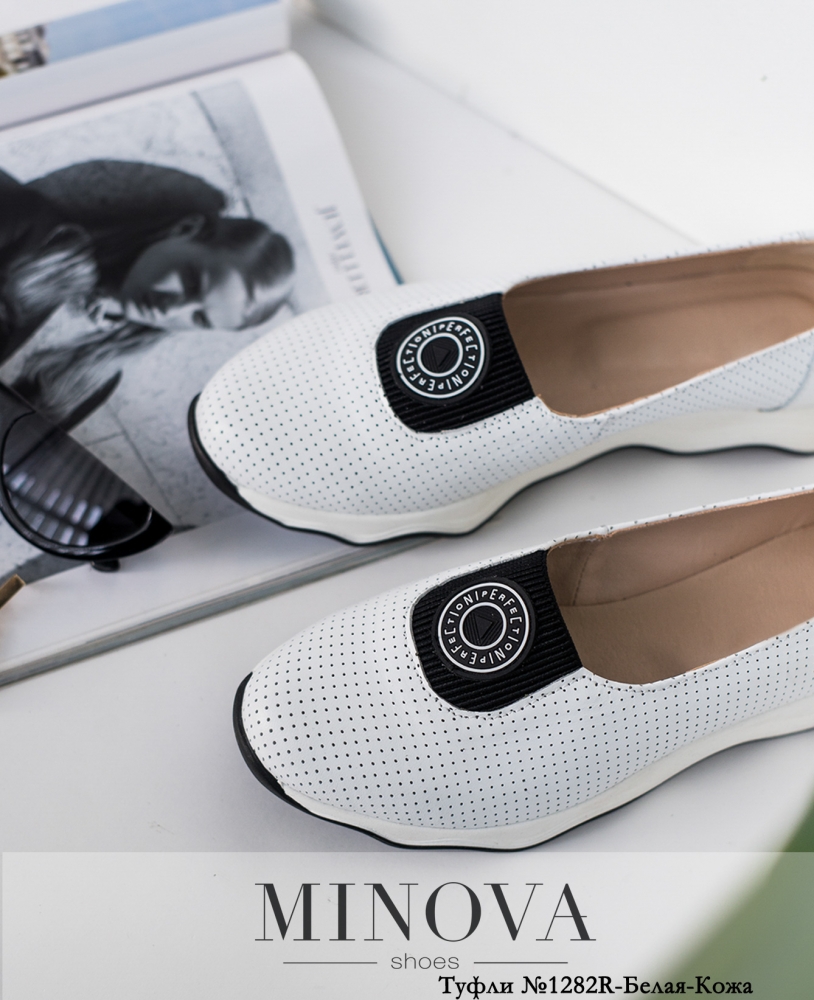 Изящные кожаные туфли с перфорированной поверхностью, на подъёме - декоративная нашивка, подошва волнистая, литая, плотная. Застёжек нет.