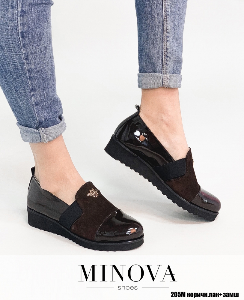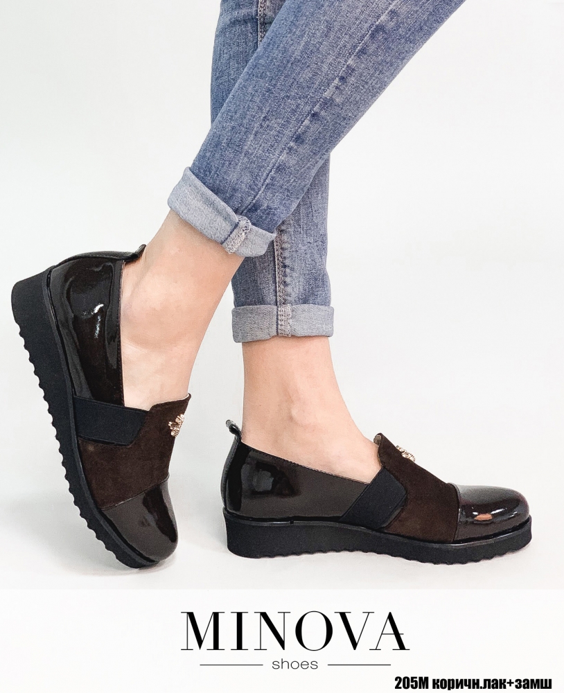 Туфлі №205М-коричневий лак-замш
