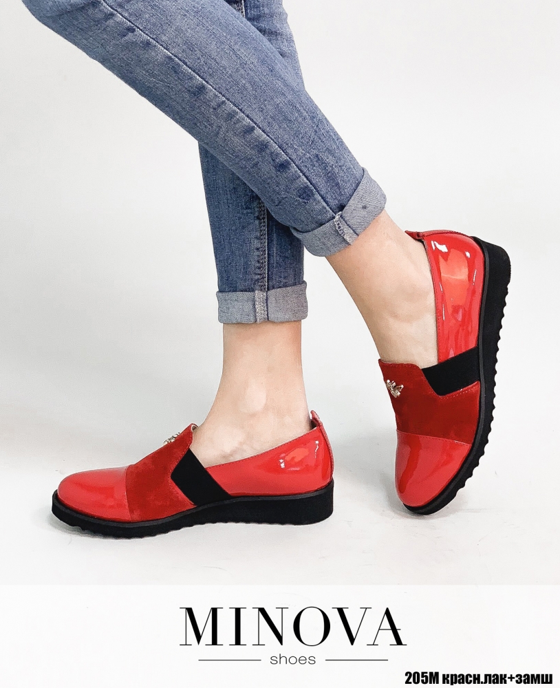 Туфли №205М-красный лак-замш