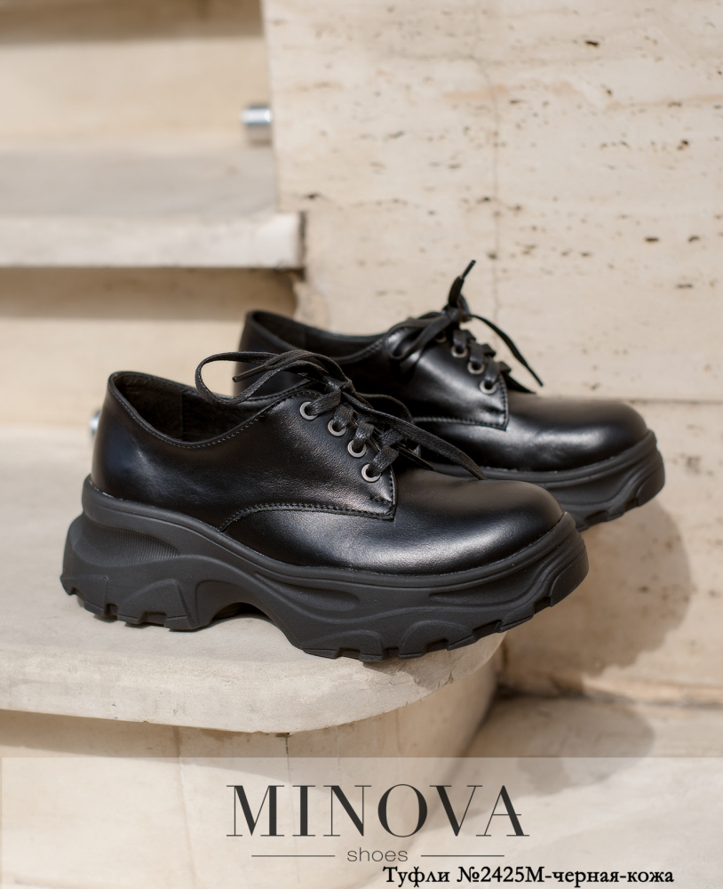 Стильные туфли на плотной рифленой подошве выполнены из мягкой натуральной кожи. Шнуровка укреплена люверсами, под ней - язычок.