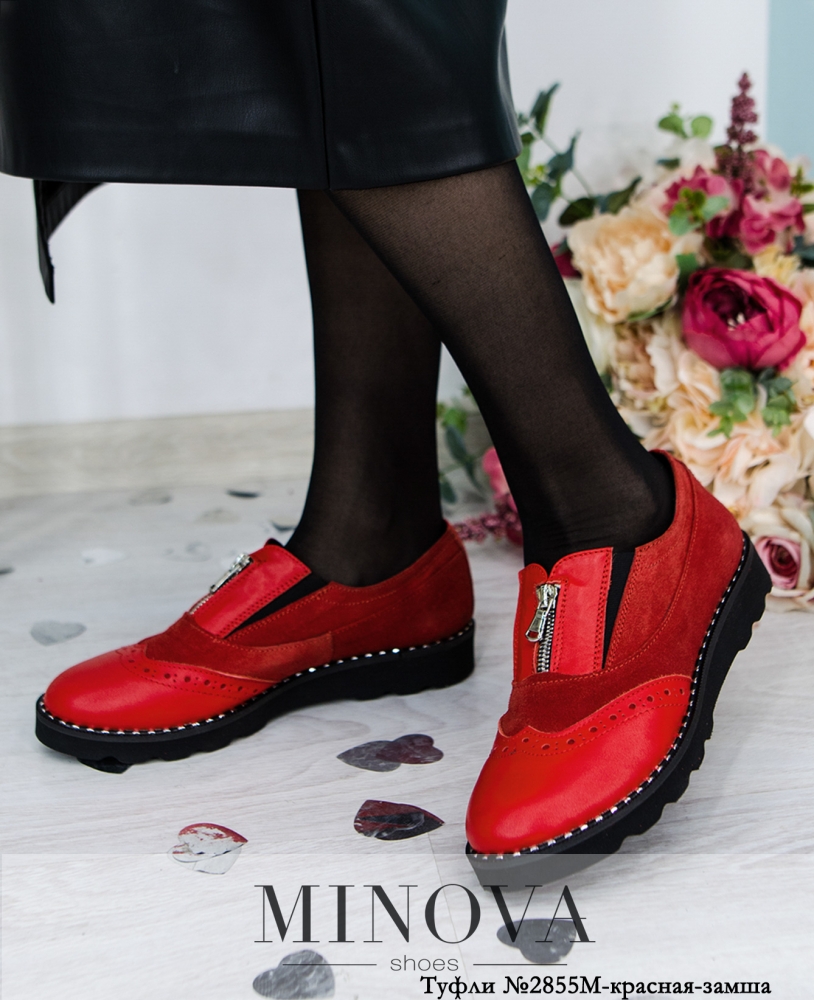 Стильные туфли в "мужском" стиле с брогированным носком. На подъёме - небольшая змейка и вставки резинки по бокам. Подошва волнистая, по ранту украшена металлическими вставками. Туфли выполнены из натуральной мягкой кожи. Высота танкетки впереди: 1.5 см.