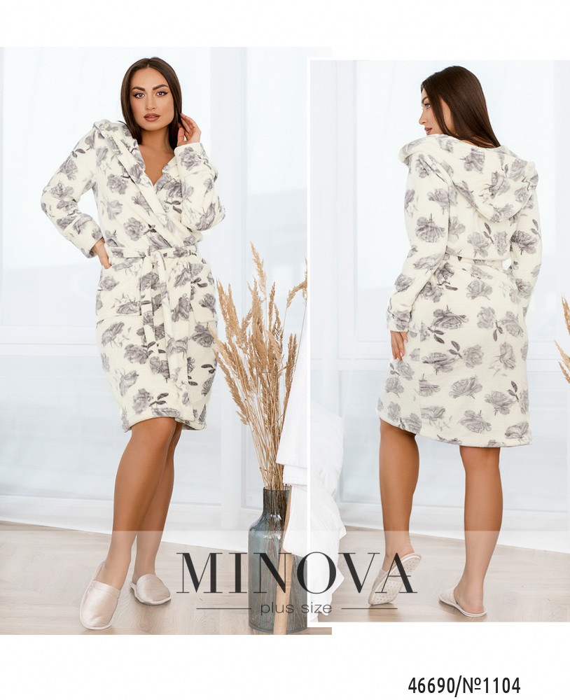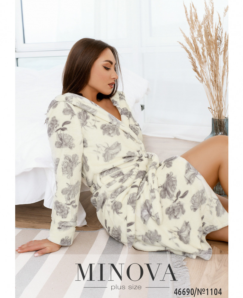 Халат №1104-серый-молочный