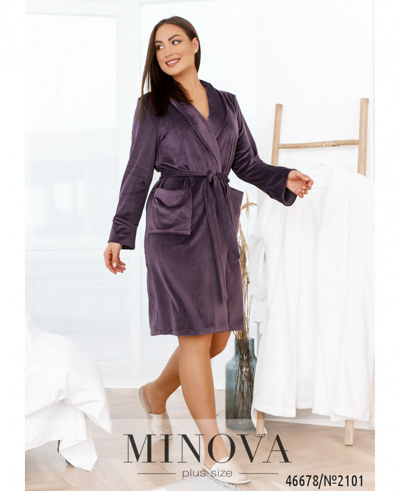 Изящный женственный халат с отложным воротником позволит вам чувствовать себя стильно и изысканно даже в привычной домашней обстановке. Модель без застежек фиксируется с помощью текстильного пояса в тон и дополнена накладными карманами по бокам.