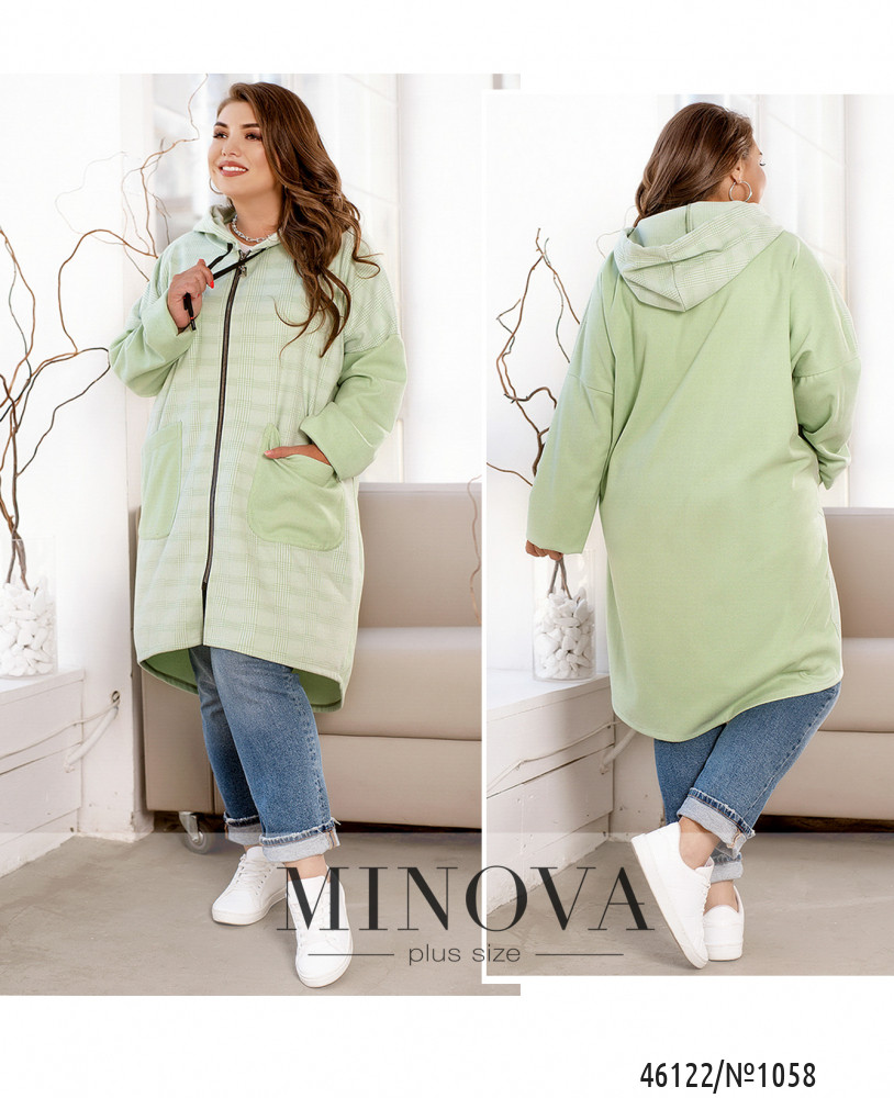 62-64 р-р: длина кардигана 84/102см, длина рукава от плечевого шва 60см, обхват рукава 50см, ОГ - 144см, ОТ -146см, ОБ -150см.