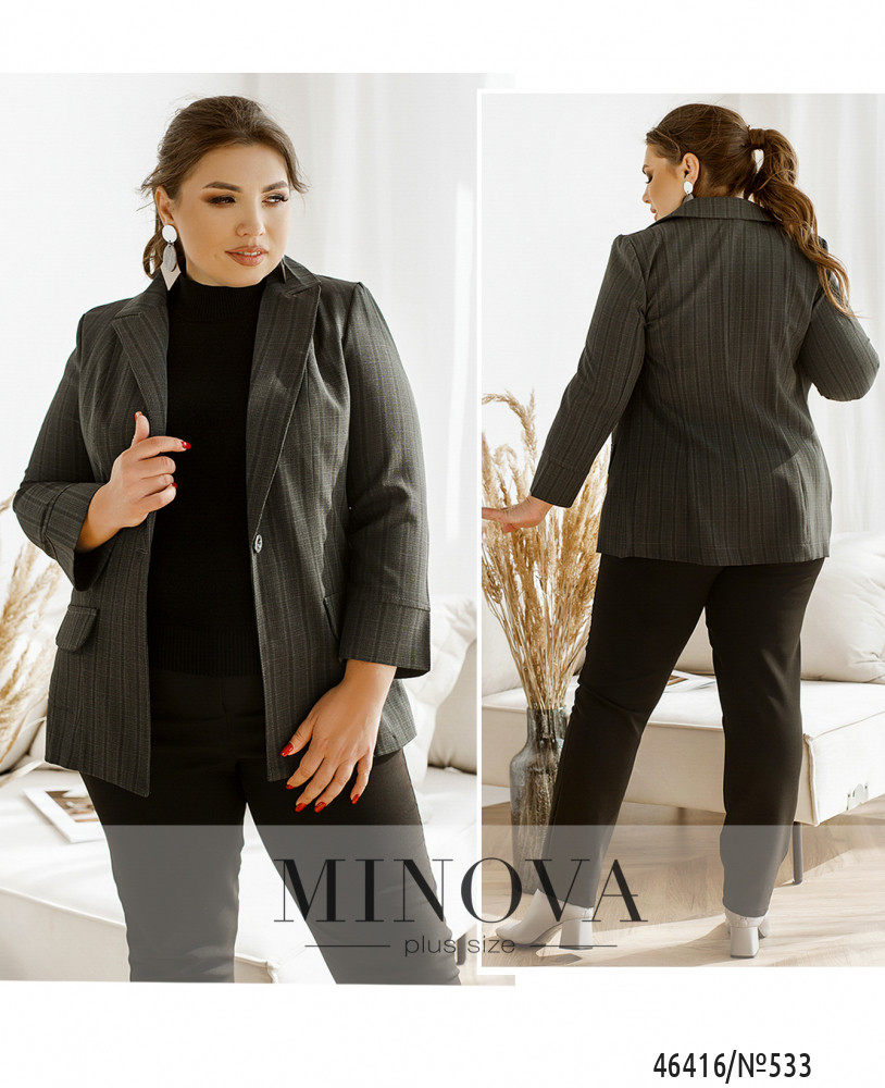54 р-р: длина пиджака 71см, длина рукава от горловины 68см, длина рукава от плечевого шва 53см, обхват рукава 45см, ОГ - 110см, ОТ -104см, ОБ -116см.