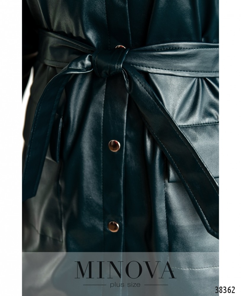 Необычный пиджак плюс сайз в стиле casual с поясом, по бокам – накладные карманы, воротничок отложной, застёгивается на ряд кнопок спереди на планке. Рукава с мягкими манжетами без пуговиц. Есть подклад.