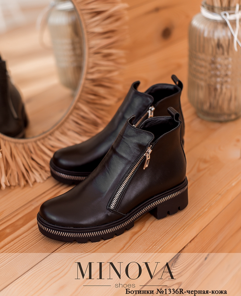 Ботинки №1336R-черная-кожа