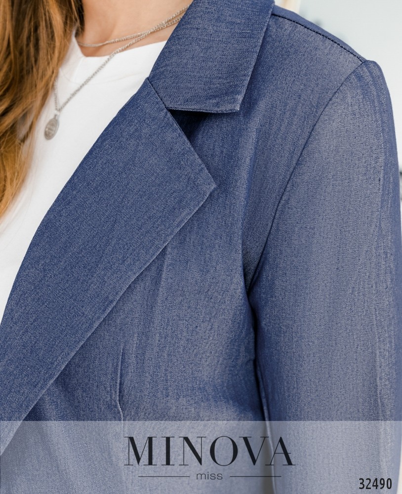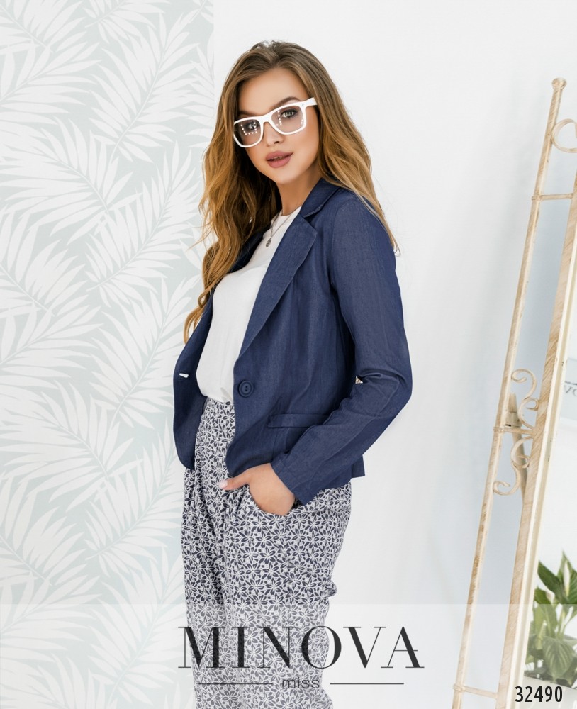 Деловой стиль приходится соблюдать и летом. Но как сочетать это с жарой и влажностью? Minova предлагает отличный вариант – лёгкий пиджак из ткани, которая будет хорошо пропускать воздух и будет приятна к телу. Пиджак двубортный, с декоративными клапанами, застёгивается на одну пуговку. Рукава при желании можно подвернуть. Силуэт приталенный, поэтому будет хорошо смотреться на девушках с фигурой типа «песочные часы» или «груша»: когда бёдра чуть шире плеч, но талия чётко выражена. Легко стирается и быстро сохнет.