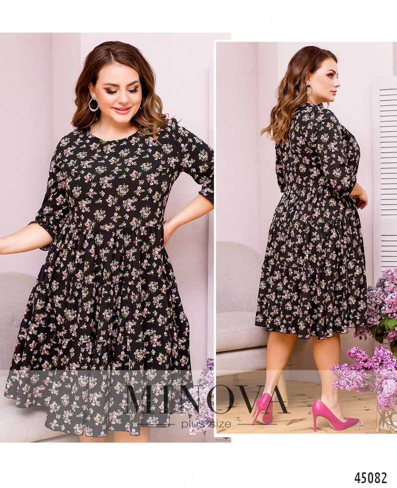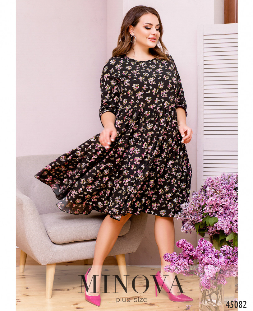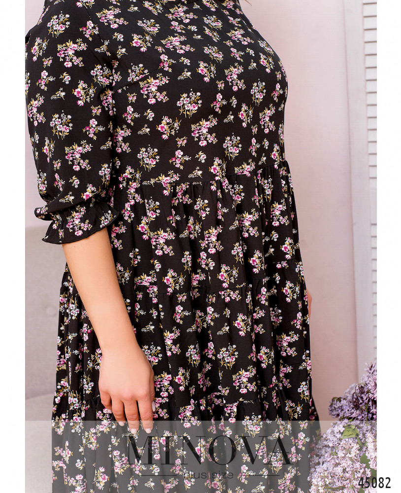 Нежное воздушное платье из тонкого летящего материала без застежек и карманов. Подол подшит к лифу и состоит из нескольких слоев оборок. Вырез горловины полукруглый. Женственные рукава ¾ с небольшой оборкой делают эту модель универсальной для весеннего и летнего сезонов.